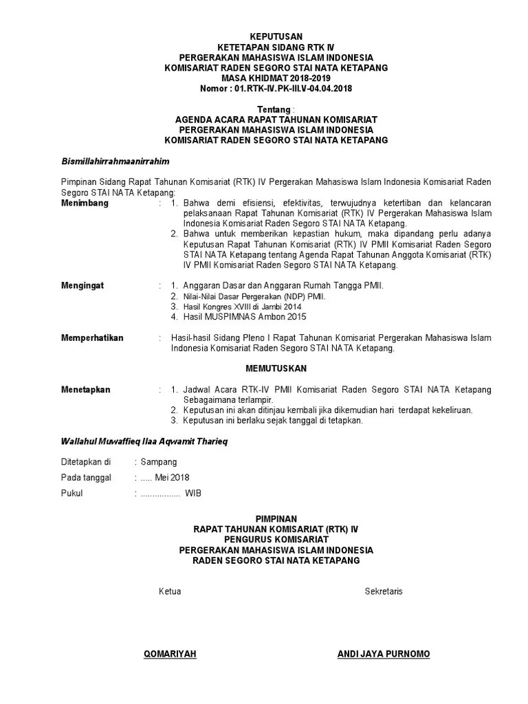 Contoh laporan pelaksanaan rtk calon kepala sekolah.docx. Contoh sk kepaniatian rtk by husni6pala. Sk mwa nomor 015 tahun 2012 tentang pembentukan panitia khusus penilaian rencana kerja dan anggaran tahunan universitas indonesia tahun 2013. Lampiran surat keputusan ini sebagai panitia workshop. Kepanitiaan pelaksanaan on the job learning diklat calon kepala sekolah tahun 2016 .